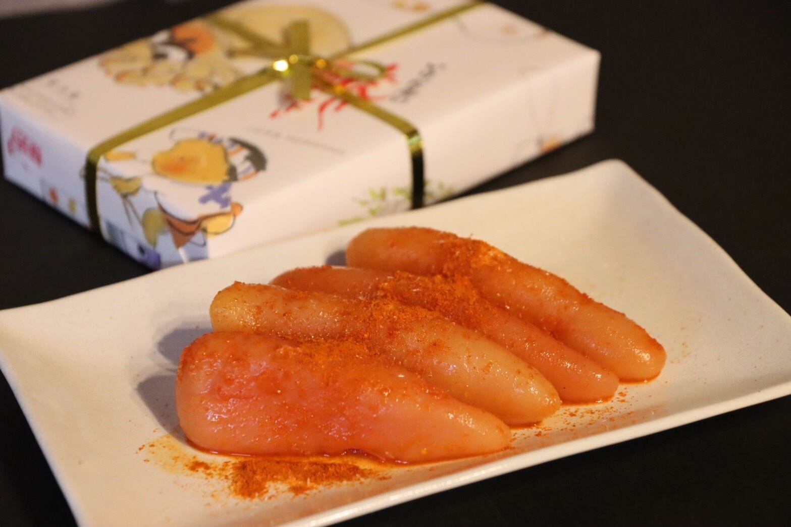 材料にこだわり無着色のたらこに自家製のタレに漬け込みました。